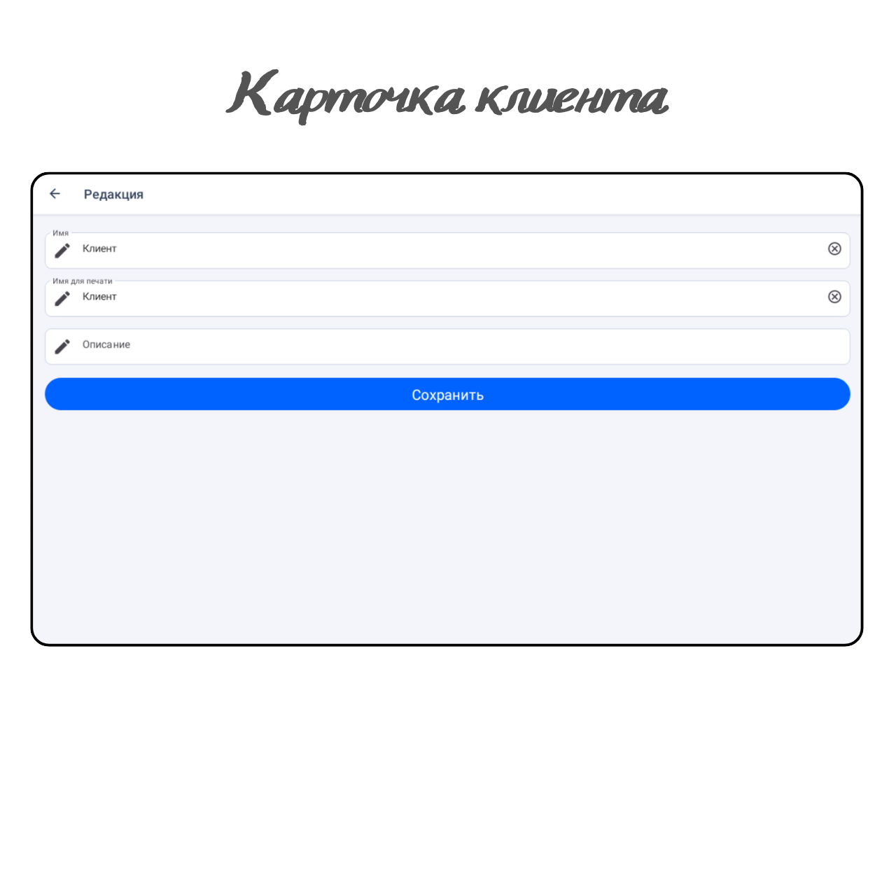 Описание. Введите описание для клиента (при необходимости.)