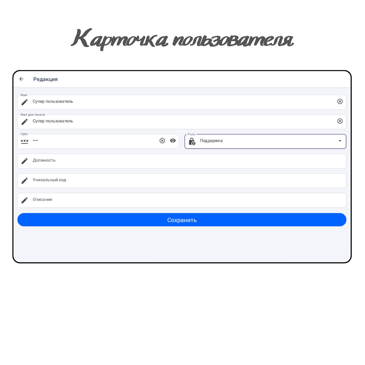 ПИН. Введите ПИН пользователя, с которым он будет входить в программу.